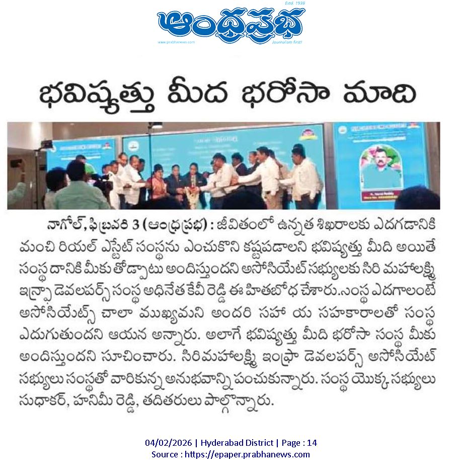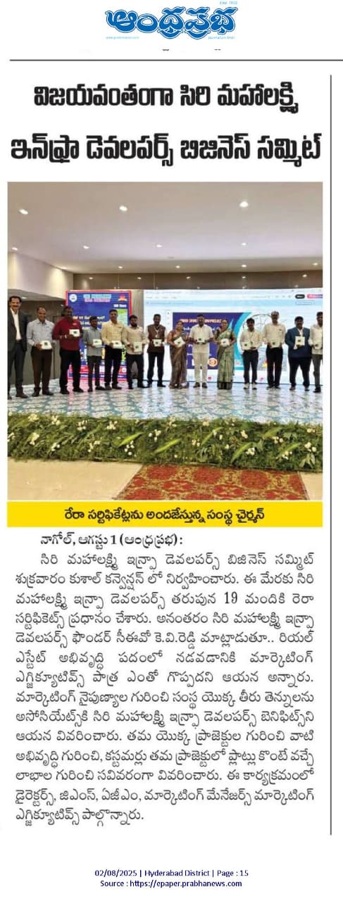 Siri Mahalaxmi Infra Developers - 1st Floor, Road No. 2, Adarshnagar Colony, Nagole Main Road, Hyderabad, Telangana, India 500068.